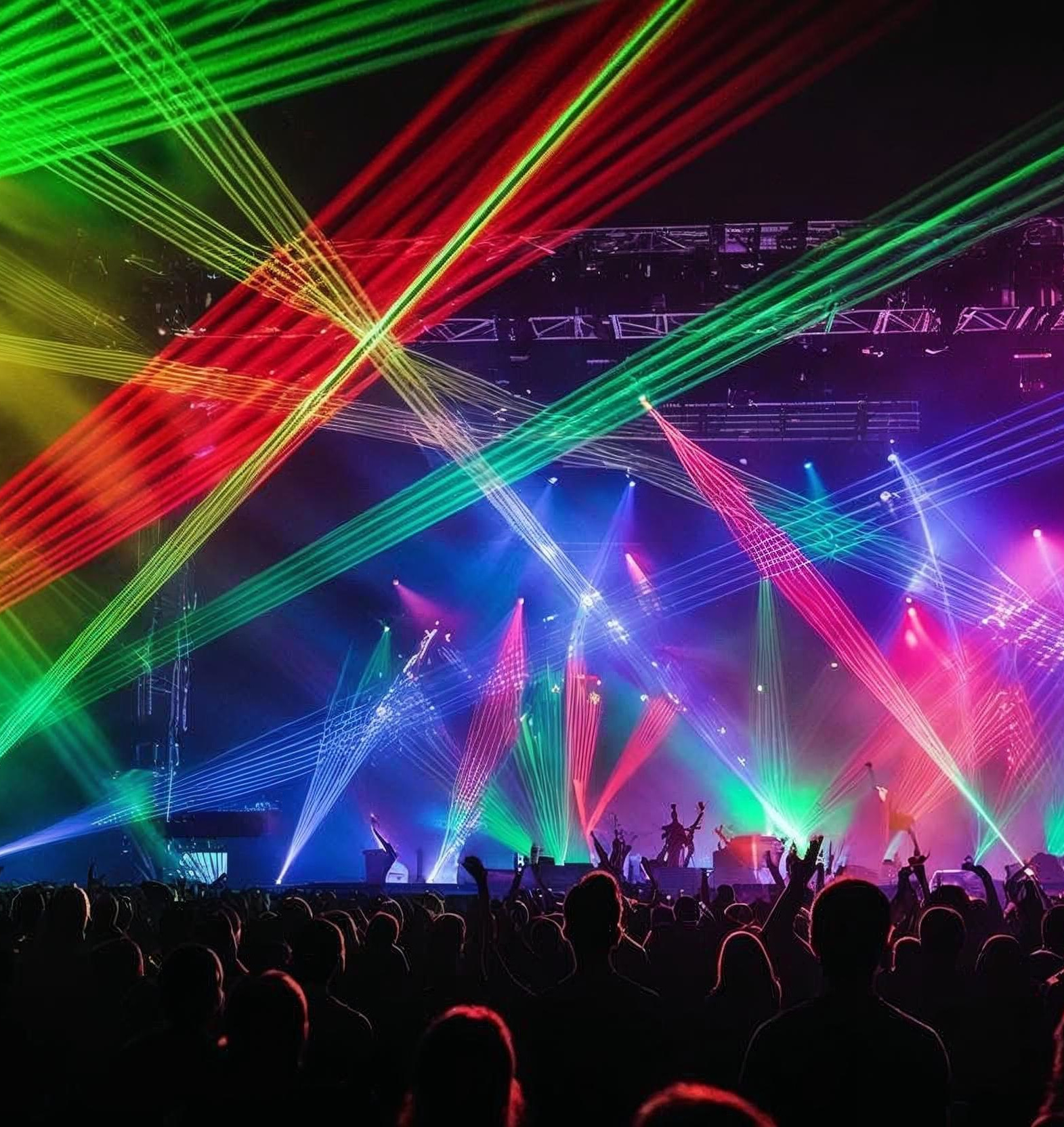 舞台、ステージ演出で活躍する演出用のムービングレーザーなど